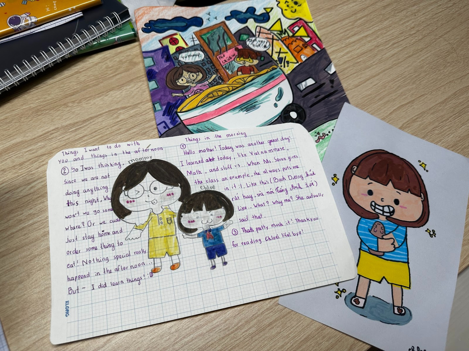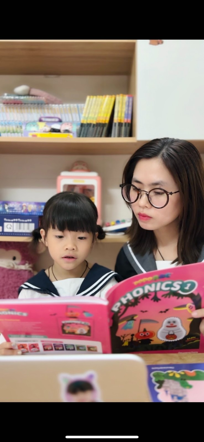 Chloe bắt đầu tiếp xúc tiếng Anh khi bốn tuổi. Khi ấy, tiếng Anh đối với em không phải là những giờ học khô cứng, mà là từng câu chuyện mẹ kể, từng bài hát vang lên trong căn nhà nhỏ. Cô bé đôi khi ngập ngừng, lặp đi lặp lại một từ chưa tròn vành rõ chữ, nhưng ánh mắt sáng lên mỗi khi phát âm thành công cho thấy niềm vui đơn giản: học ngôn ngữ là được “chơi” với nó.